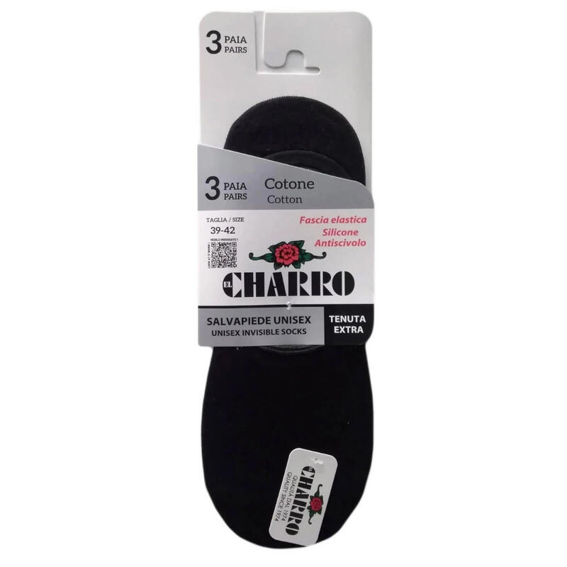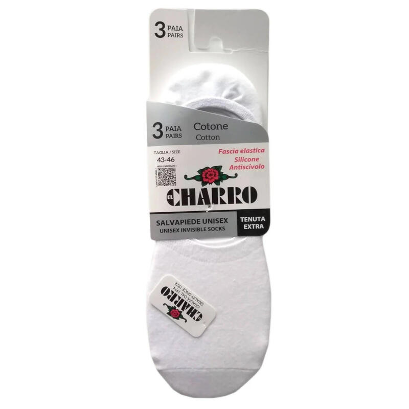 Sanetta invisibile in cotone unisex con silicone antiscivolo sul tallone e fascia elastica per una tenuta perfetta.