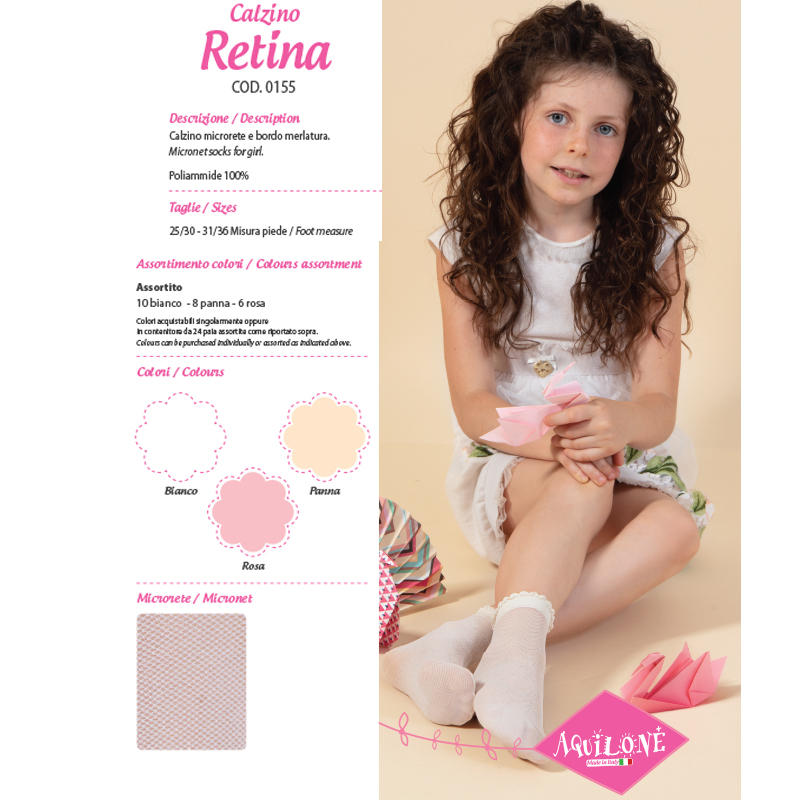 Calzino bimba in filanca stretch con effetto rete chiusa.