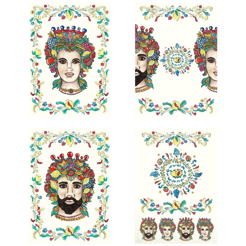 - SET 4 ASCIUGAPIATTI TESSUTO CM 50X70 STAMPATI TESTE DI MORO