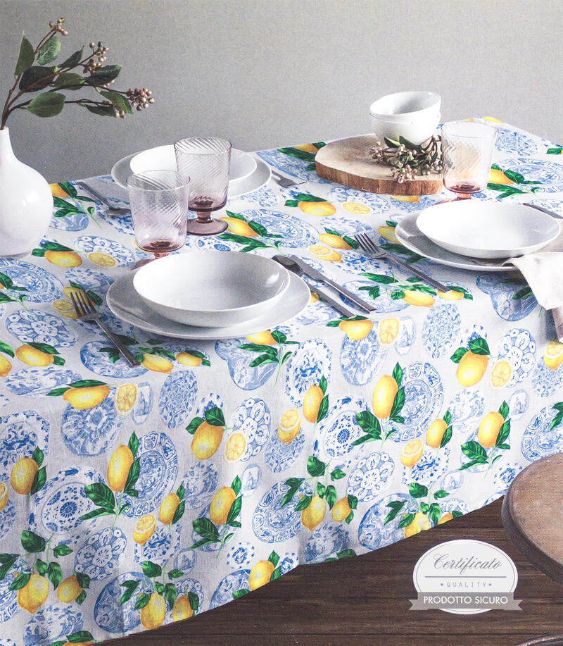 - TOVAGLIA 18 POSTI IN COTONE PANAMA STAMPATA CM 140X360