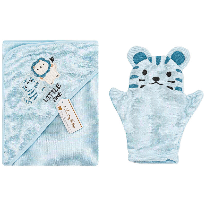 - ACCAPPATOIO NEONATO TRIANGOLO RICAMATO+GUANTO SPUGNA