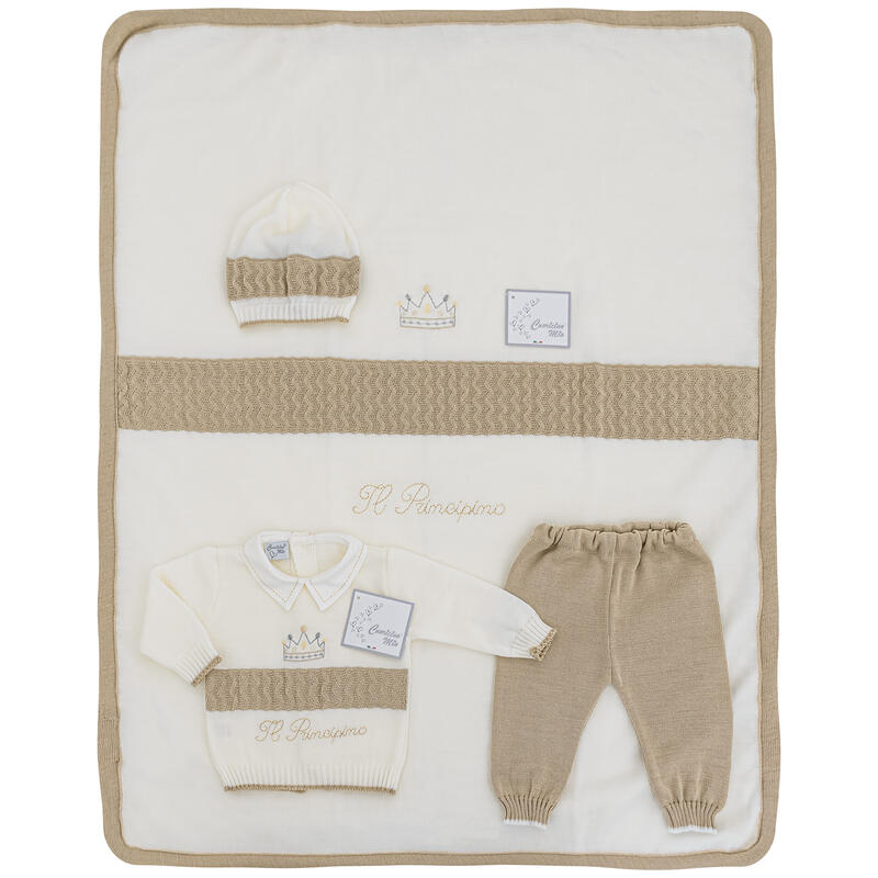 LA CONFEZIONE INCLUDE: COPERTINA+CAPPELLINO+COMPLETO MISURA 0-3 MESI