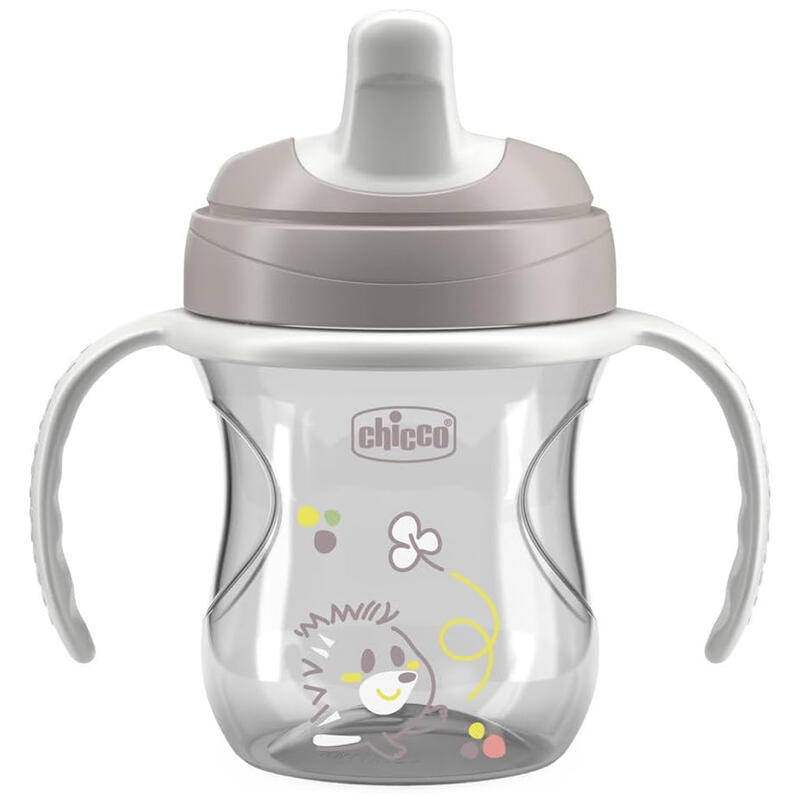 Beccuccio ergonomico semi-soft,resistente ai morsi.Beccuccio sagomato per favorire il giusto posizionamento delle labbra e decentrato per facilitare la corretta postura del collo durante la bevuta.Tazza ergonomica con manici removibili, per seguire le esigenze del bambino.Valvola facili sorsi removibile, brevettata per garantire la tenuta anti-goccia della tazza senza compromettere la facilità di bevuta del bambino.