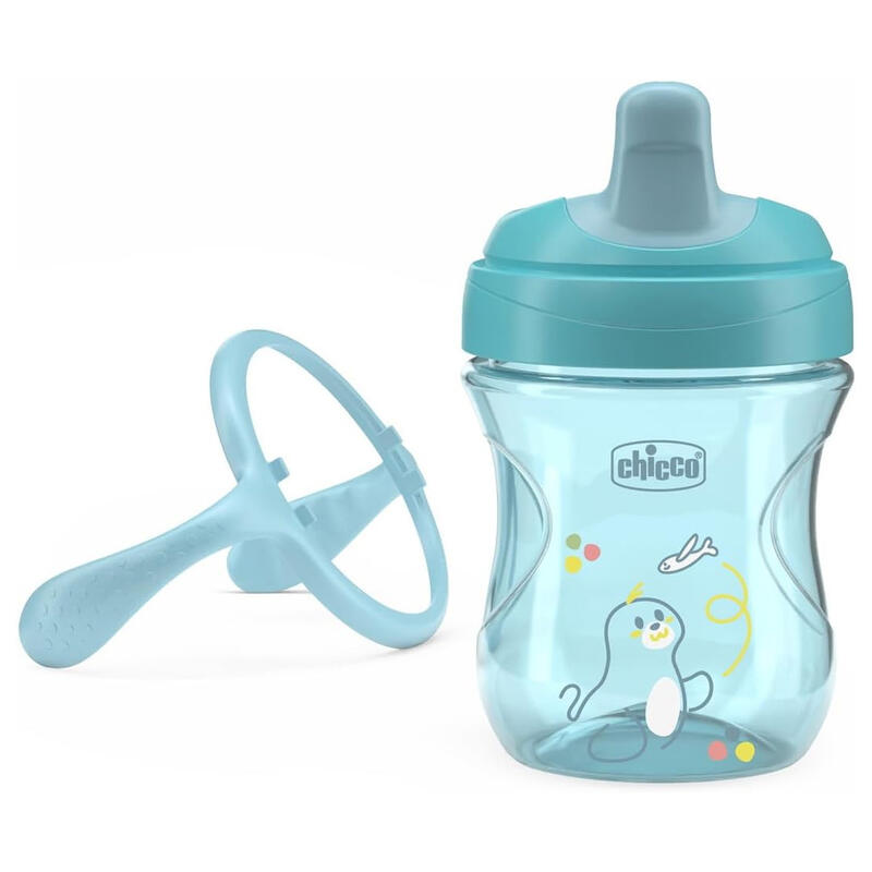 Beccuccio ergonomico semi-soft,resistente ai morsi.Beccuccio sagomato per favorire il giusto posizionamento delle labbra e decentrato per facilitare la corretta postura del collo durante la bevuta.Tazza ergonomica con manici removibili, per seguire le esigenze del bambino.Valvola facili sorsi removibile, brevettata per garantire la tenuta anti-goccia della tazza senza compromettere la facilità di bevuta del bambino.