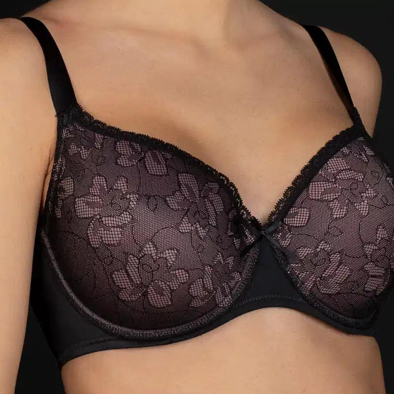 Elegante reggiseno con coppe C imbottite e ferretto. Tessuto esterno in pizzo.