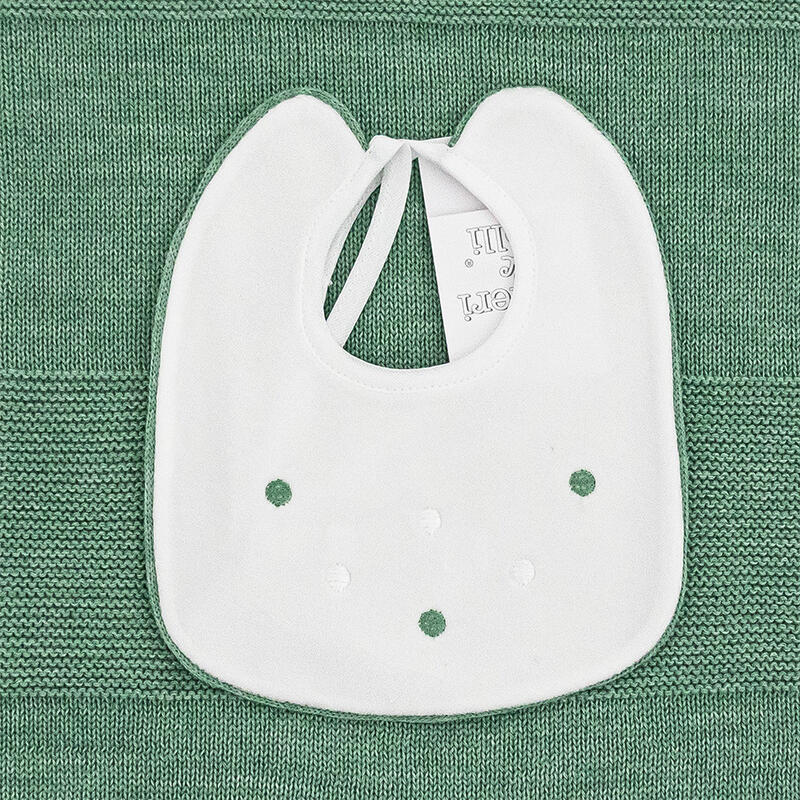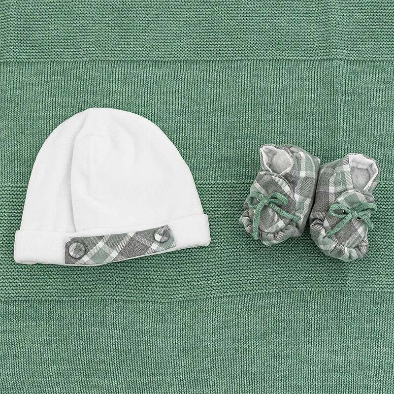 SET CON COPERTINA-CAPPELLINO-BAVETTA-SCARPETTA- COMPLETO 2 PZ (TAGLIA 0-1 MESE) IN CINIGLIA E LANA MERINOS