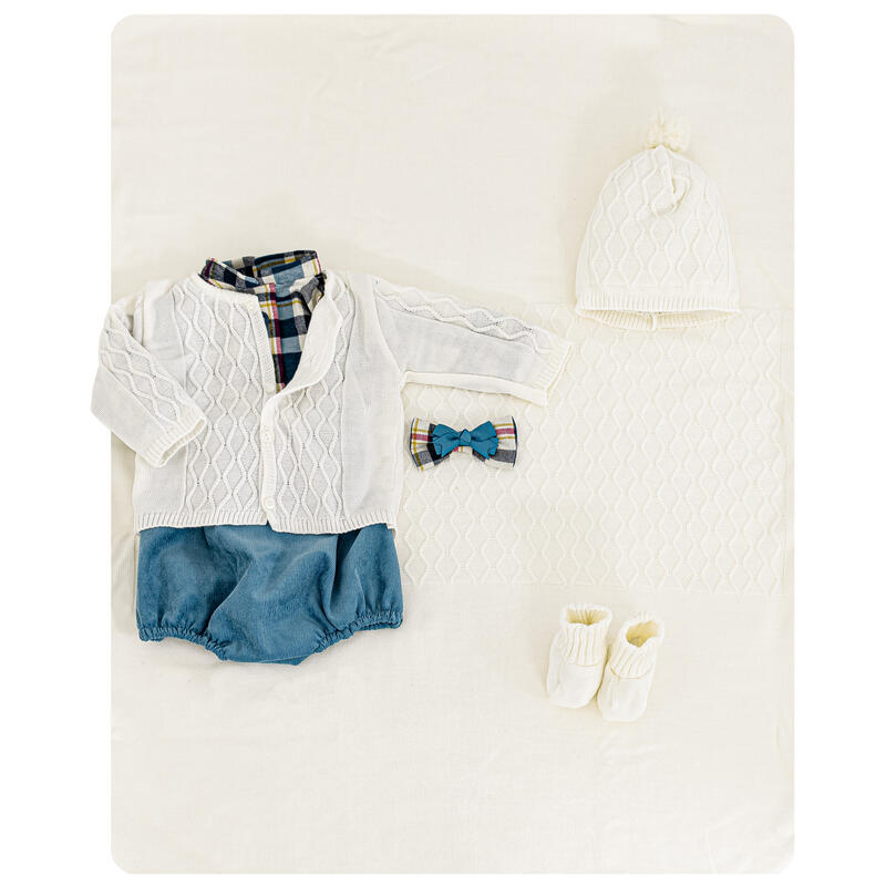 LA CONFEZIONE INCLUDE: COMPLETO MISTO LANA 0-3 MESI +CAPPELLO+SCARPINA+COPERTINA